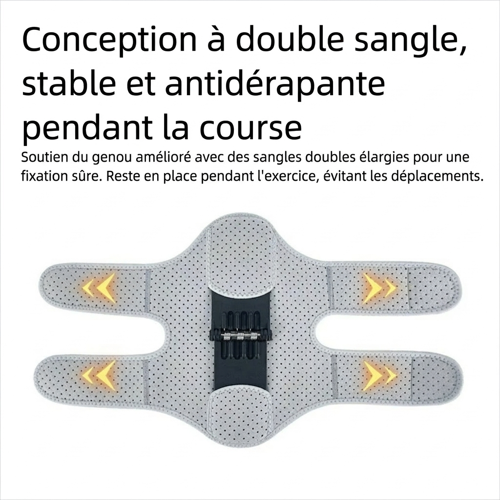Ses sangles réglables à l'infini permettent un ajustement sur mesure pour toutes les morphologies, peu importe la taille de votre genou. Portez-la en toute discrétion sous vos vêtements ou par-dessus votre pantalon préféré, selon vos envies.