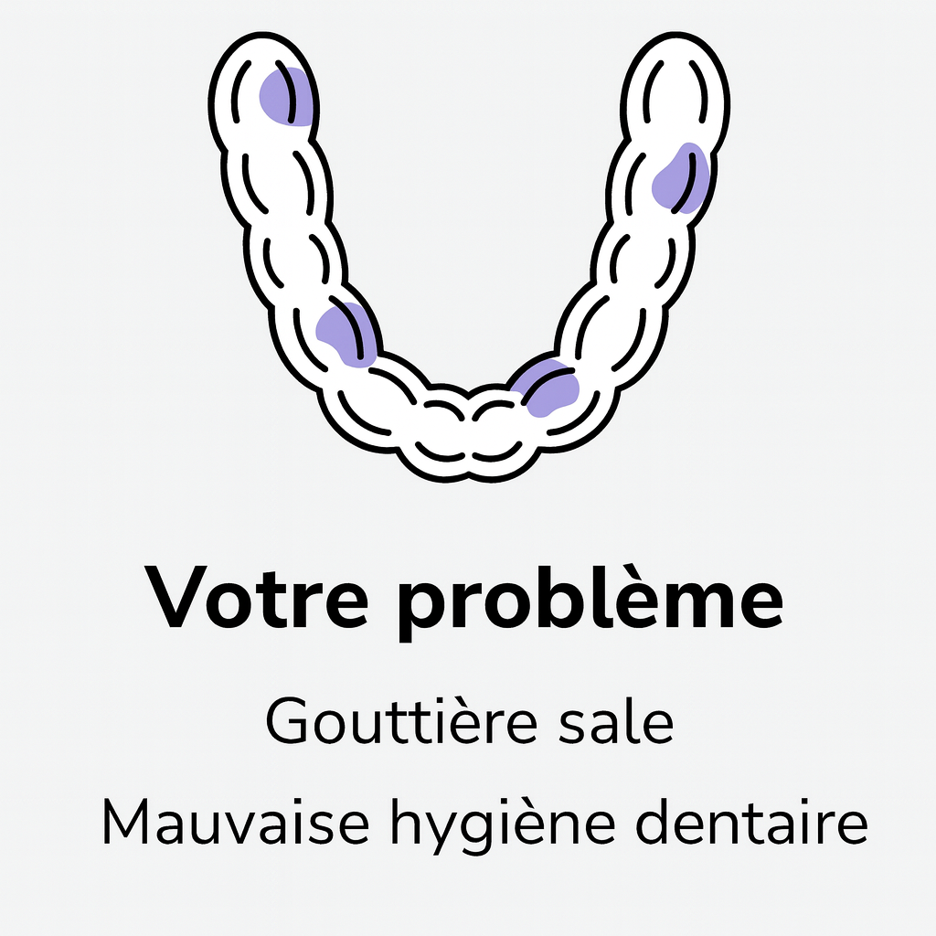 Porter une gouttière mal nettoyée, c’est comme remettre chaque jour dans sa bouche un nid invisible de bactéries et de germes. Cela peut provoquer :