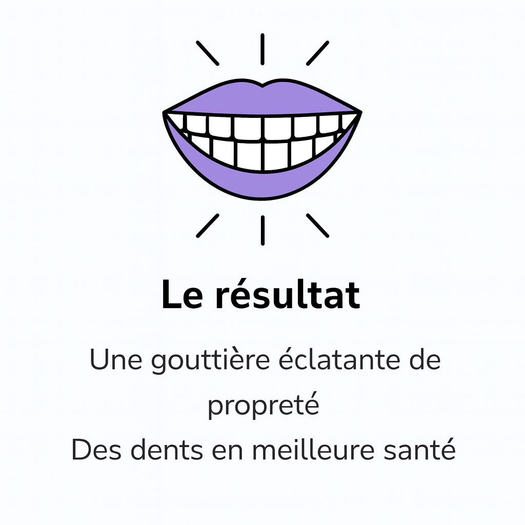 💎 Un sourire éclatant : gouttière toujours propre, transparente et agréable à porter.