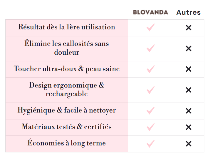 “J’ai dépensé une fortune en soins pédicure pour rien. Là, 3 minutes avec Blovanda et mes pieds sont comme neufs. Même mon mari l’a utilisé (en cachette) 😄.”