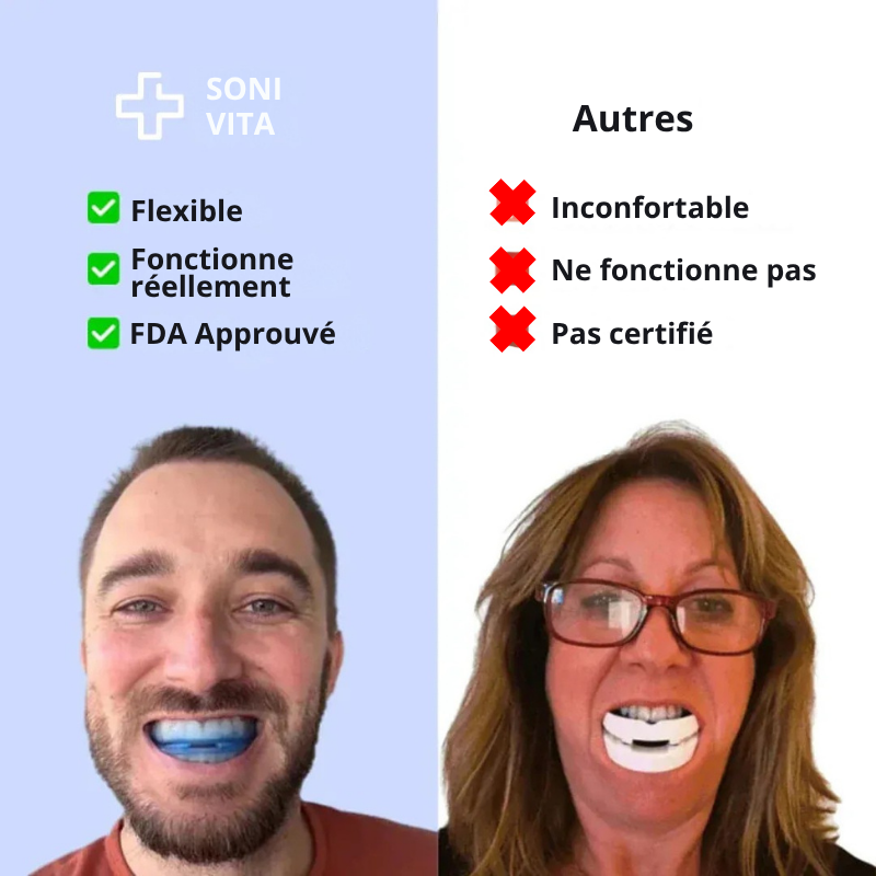 L’embout SoniVita avance légèrement la mâchoire, maintenant les voies respiratoires dégagées et réduisant efficacement le ronflement.