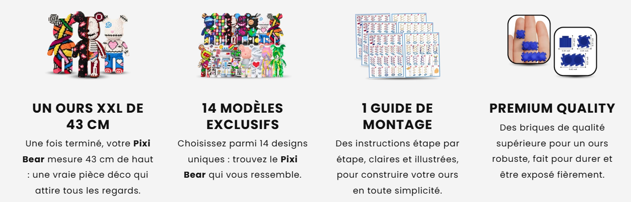 Construisez votre PixiBear™ de rêve, sans aucun risque